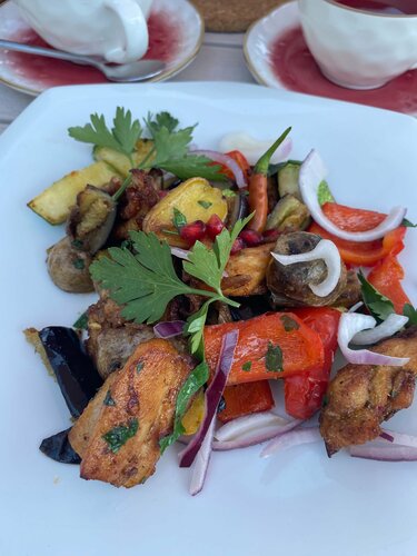 Сегодня в первый раз побывала в этом месте. Нас пустили с собакой (это для меня огромный плюс), нам предложили разместиться на место с шикарным видом. Еда вкусная (я люблю грузинскую кухню). Персонал приветливый. Время провели в удовольствие и в удовольствие покушали. Лимонад домашний рекомендую, он без сахара. Единственное, вместо цитрусового лимонада вам предложат тропический, а вместо "клубника-базилик" - ягодный, но об этом официант предупредил заранее, поэтому неожиданности не было.